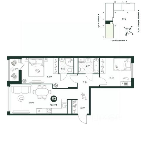 Еврочетырехкомнатная квартира с мастер-спальней и просторной кухней-гостиной для большой семьи. Планировкой предусмотрено два санузла и лоджия, выйти на которую можно из спальни. В прихожей есть место под гардеробную. Окна на две стороны.