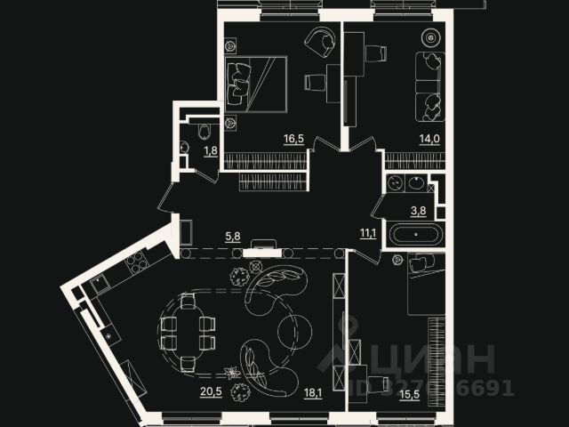 Продается 3комнатная квартира на 10 этаже от застройщика Страна Девелопмент. Площадь квартиры 79,32 кв. м.