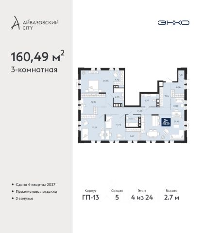 Дом монолитный, многоподъездный, переменной этажности, от 7 до 11 этажей. Квартира находится в 9-й секции высотой 7 этажей в корпусе 2. На этаже 7 квартир. В подъезде 1 пассажирский и 1 грузовой лифт. Окончание строительства - 1 квартал 2027 года. Оформление сделки по договору долевого участия.