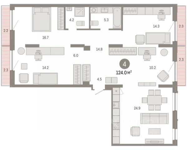 Квартира в квартале премиум-класса в центре города. Рядом набережная и пешеходный бульвар с гастрономией, торговой галереей и архитектурными арт-объектами. Планировка предусматривает мастер-спальню с выходом на балкон, две детские комнаты, кабинет, просторную кухню-гостиную, дополнительный санузел и постирочную. Окна выходят на три стороны, поэтому в комнаты проникает много естественного света. Высота окон — 2,4 метра. В кухне-гостиной и двух спальнях спроектированы радиусные окна для бесшовного обзора. Профили выполнены из золотистого алюминия. Витражи с тройным остеклением и двухкамерным стеклопакетом. Они не пропускают холод и жар — это сохраняет комфортный микроклимат в квартире. Внутри пола встроены бесшумные конвекторы. Они создают естественную циркуляцию теплого воздуха и не загораживают вид из окна. Узнать детали проекта и договориться о персональной презентации можно по номеру, указанному в объявлении.