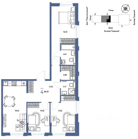 Квартира в рассрочку без процентов от застройщика. Эксклюзивные ипотечные условия. Дом будет сдан в 4 квартале 2025 года. Звоните, наши менеджеры вам все расскажут! Четырехкомнатная квартира с предчистовой отделкой в ЖК "Республики 205" на 4 этаже. Общая площадь: 138.11 кв.м., жилая: 51.6 кв.м., площадь просторной кухни-гостиной: 38 кв.м. Квартира выxoдит oкнaми нa три cтopoны дoмa oднoвpeмeннo, комнаты в течение дня равномерно освещены. В квартире две лоджии, три совмещенных санузла. Высота потолков 2.6 м. Купить квартиру можно с помощью программ покупки от застройщика Брусника: - ипотека по эксклюзивной ставке с помощью в получении положительного кредитного решения через сервис ипотечный брокер; - квартиры в рассрочку без процентов от застройщика Брусника; - обмен квартиры на новую. Получить одобрение ипотеки или рассрочку, а также осуществить обмен квартир можно онлайн. Дом монолитный, многоподъездный, переменной этажности, от 9 до 17 этажей. Квартира находится в 6-й секции высотой 15 этажей в корпусе 1. На этаже 7 квартир. В подъезде 1 пассажирский и 1 грузовой лифт. Начало строительства - 2 квартал 2023 года. В настоящее время строительство окончено, дом сдан в 4 квартале 2025 года. Оформление сделки по договору купли-продажи. Район Проект расположен в границах улиц Пермякова, Энергетиков, Воровского и Республики. До центра города — 10 минут на машине. Рядом — автомобильная развязка на пересечении улиц Пермякова и Республики. В шаговой доступности есть школы, детские сады, поликлиники, крупный торговый центр, автовокзал и несколько скверов. Проект "Республики 205" — это проект комплексного развития территории, уникальный по своему наполнению. Переосмысляя бывшую территорию завода медицинского оборудования, мы создадим новое место силы — микрорайон, насыщенный деловой, развлекательной, рекреационной, игровой, образовательной и медицинской инфраструктурой. До каждого полезного сервиса здесь можно будет дойти за 15 минут. Локальными центрами "Республики 205" будут общественные пространства — скверы, парки, бульвары и площади. В границах нашего участка мы намерены разместить школу, рассчитанную на 1550 учеников, два детских сада на 300 мест и встроенный детский сад на 100 мест. В одном из цехов бывшего завода расположится креативный кластер "Кузница". Он станет площадкой для нескольких институций — галереи, лектория, книжного магазина-библиотеки, кинобара и точек креативного pop-up-ритейла. Пешеходные бульвары внутри района соединят между собой улицу ресторанов, детские и спортивные площадки, событийную площадь и летний кинотеатр. Идентификатор квартиры по базе застройщика: МЕД01-01-6-6. #2igiT1