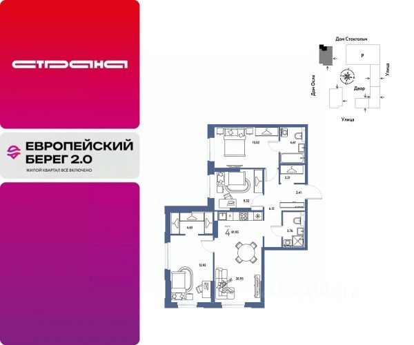 4-комн. квартира с предчистовой отделкой в ЖК "Республики 205" на 4 этаже. Общая площадь: 138.11 кв.м., жилая: 51.6 кв.м., площадь просторной кухни-гостиной: 38 кв.м. Квартира без проходных комнат, окна выходят нa три cтopoны дома. В квартире две лоджии, три совмещенных санузла. Высота потолков 2.6 м.