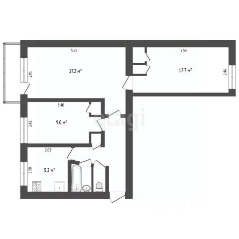 Гармоничная функциональная планировка: прихожая, где удобно разместился шкаф-купе, кухня 10 кв.м., гостиная (она может быть спальней, детской для нескольких детей) 19 кв.м., с выходом на большую остекленную лоджию 6 кв.м., еще одна жилая комната 11 кв.м., раздельный сан.узел.