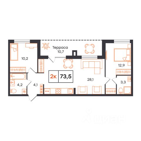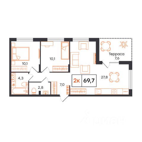 Квартира с кухней-гостиной и четырьмя спальнями в Октябрьском на Туре. Особенности планировки: вид во двор, гардеробная, лоджия, мастер-спальня, постирочная, предчистовая отделка, разнесённые спальни. квартиры в нашей базе: ОКТ09-Ж2.7.1. Район Проект расположен на берегу реки, в одном из самых живописных и экологичных районов Тюмени. За последние годы облик района изменился. По соседству с индивидуальной застройкой выросли многоквартирные дома. При проектировании "Октябрьского на Туре" нашей приоритетной задачей стало сохранение природного ландшафта: мы постарались деликатно вписать в него современную архитектуру. Квартал удачно расположен с точки зрения дорожной инфраструктуры. На автомобиле путь до центра города составит 15 минут. Добраться до набережной и главных тюменских достопримечательностей можно и на общественном транспорте. В пешей доступности находится автобусная остановка. Проект По мастер-плану здесь будет восемь домов. Ядро застройки составляют замкнутые кварталы переменной этажности. Их высотность понижается по мере приближения к реке. На углах участка мы разместили башни-доминанты. Одной из достопримечательностей квартала станет парк на Туре — здесь появится зеленая зона протяженностью около 6 километров для пеших и велопрогулок. Смысловая ось квартала — широкая главная улица с высаженными вдоль неё высокими деревьями. Они создают тень и работают как шумо- и пылезащитные экраны. Это место сосредоточения основных пешеходных и транспортных потоков, на сторону которых мы ориентировали большинство коммерческих помещений. Отсюда жители могут свернуть на тихие соседские улицы и попасть на внутриквартальную площадь — ещё одну точку притяжения. #z4CDBI