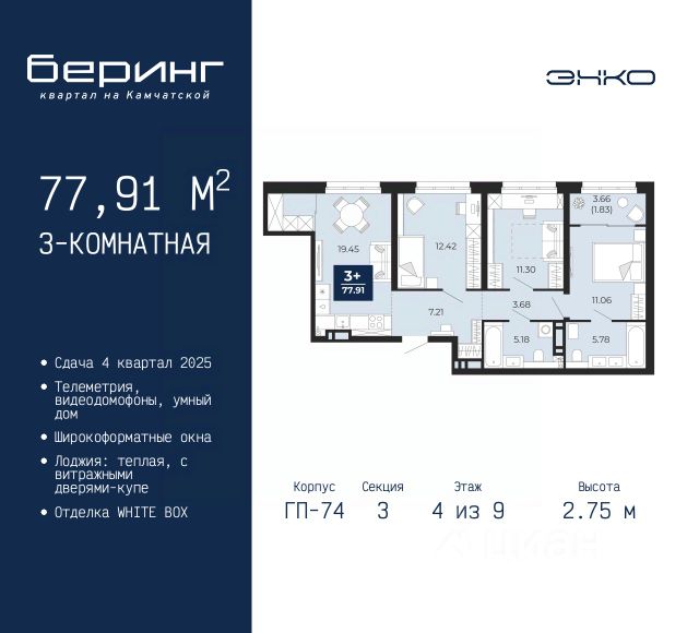 Трехкомнатная квартира от застройщика в ЖК "Айвазовский City" на 2 этаже. Квартира без отделки, новый собственник может сделать ремонт по своему дизайн-проекту. Общая площадь: 113.11 кв.м., жилая: 50 кв.м., площадь просторной кухни-столовой: 31.74 кв.м. Квартира угловая, идеально подойдет любителям тишины и панорамных видов. В квартире две лоджии, три совмещенных санузла. Высота потолков 2.72 м.
