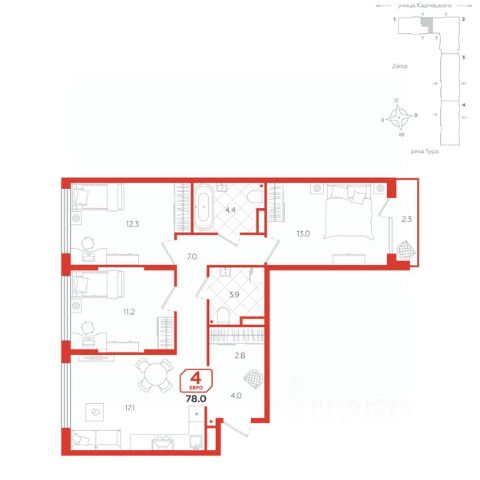 • ✓ В базе Циан 69 4-комнатных квартир на 8 этаже в Тюменской области