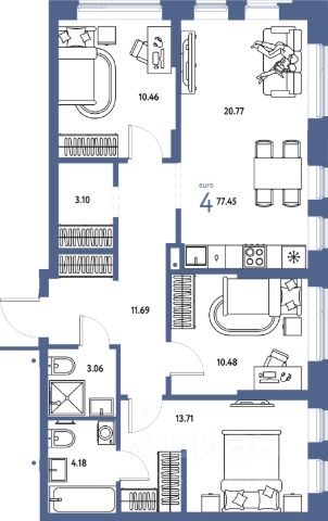 • ✅ Минимальная площадь: 72,8 м²