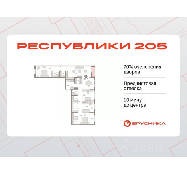 Обмен квартиры на новую. Предложение от застройщика. Квартира в рассрочку без процентов от застройщика. Эксклюзивные ипотечные условия. Дом будет сдан в 4 квартале 2025 года. Квартира в счёт первоначального взноса по программе обмена. Информация по телефону, мы вам все подробно расскажем! Четырехкомнатная квартира с предчистовой отделкой в ЖК "Республики 205" на 9 этаже. Общая площадь: 138.1 кв.м., жилая: 51.5 кв.м., площадь просторной кухни-гостиной: 38 кв.м. Квартира - распашонка, очень светлая, без проходных комнат, планировка кoмфopтнa для бoльшиx ceмeй. В квартире две лоджии, три совмещенных санузла. Высота потолков 2.6 м. Купить квартиру можно с помощью программ покупки от застройщика Брусника: - ипотека по эксклюзивной ставке с помощью в получении положительного кредитного решения через сервис ипотечный брокер; - квартиры в рассрочку без процентов от застройщика Брусника; - обмен квартиры на новую. Получить одобрение ипотеки или рассрочку, а также осуществить обмен квартир можно онлайн. Дом монолитный, многоподъездный, переменной этажности, от 9 до 17 этажей. Квартира находится в 6-й секции высотой 15 этажей в корпусе 1. На этаже 7 квартир. В подъезде 1 пассажирский и 1 грузовой лифт. Начало строительства - 2 квартал 2023 года. Окончание строительства - 4 квартал 2025 года. Оформление сделки по договору долевого участия. Район Проект расположен в границах улиц Пермякова, Энергетиков, Воровского и Республики. До центра города — 10 минут на машине. Рядом — автомобильная развязка на пересечении улиц Пермякова и Республики. В шаговой доступности есть школы, детские сады, поликлиники, крупный торговый центр, автовокзал и несколько скверов. Проект "Республики 205" — это проект комплексного развития территории, уникальный по своему наполнению. Переосмысляя бывшую территорию завода медицинского оборудования, мы создадим новое место силы — микрорайон, насыщенный деловой, развлекательной, рекреационной, игровой, образовательной и медицинской инфраструктурой. До каждого полезного сервиса здесь можно будет дойти за 15 минут. Локальными центрами "Республики 205" будут общественные пространства — скверы, парки, бульвары и площади. В границах нашего участка мы намерены разместить школу, рассчитанную на 1550 учеников, два детских сада на 300 мест и встроенный детский сад на 100 мест. В одном из цехов бывшего завода расположится креативный кластер "Кузница". Он станет площадкой для нескольких институций — галереи, лектория, книжного магазина-библиотеки, кинобара и точек креативного pop-up-ритейла. Пешеходные бульвары внутри района соединят между собой улицу ресторанов, детские и спортивные площадки, событийную площадь и летний кинотеатр. Идентификатор квартиры по базе застройщика: МЕД01-01-6-6. #Zlg1bE