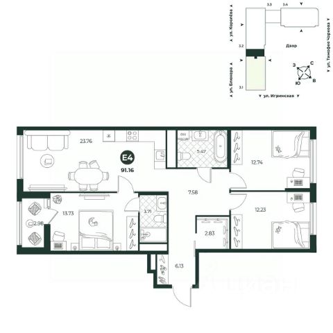 Удобная четырехкомнатная квартира предлагает максимум комфорта и функциональности для современной жизни. Просторная кухня-гостиная с выделенной зоной отдыха создаёт уютную атмосферу для семейных собраний и дружеских встреч. Здесь можно наслаждаться временем с близкими, готовя любимые блюда или просто расслабляясь в комфортной обстановке. Прихожая включает нишу для хранения, что позволяет поддерживать порядок и организованность, с лёгкостью размещая обувь и верхнюю одежду, а также другие необходимые вещи. С двумя просторными детскими комнатами, квартира идеально подходит для семей с разновозрастными детьми. Каждая из детских легко адаптируется под интересы и потребности ваших детей, обеспечивая пространство для учебы и игры. Спальня родителей расположена в отдельном крыле квартиры, что создаёт уединённую обстановку для отдыха. В этой комнате предусмотрены выделенные зоны для работы и хранения, что позволяет удобно организовать своё пространство и поддерживать порядок. Дополнительное удобство предоставляет гостевой санузел, что удобно для жителей и гостей, сохраняя приватность основных комнат. Эта квартира станет отличным выбором для тех, кто ценит комфорт, практичность и современные решения в планировке, обеспечивая идеальные условия для жизни и отдыха всей семьи.