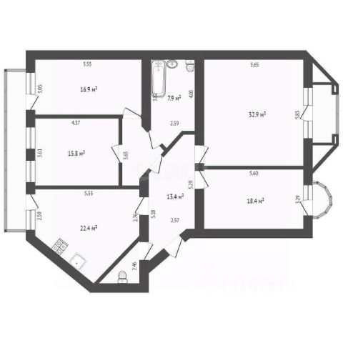 Квартира: Распашонка, окна выходят на обе стороны дома. Общая площадь: 134,8 кв.м. Состоит из кухни 21,7 кв.м. с выходом на лоджию: 6кв.м. она обшита деревом и застеклена. Спальня 1: 22,4 кв.м. Санузел гостевой, в коридоре, Спальня 2: используется как гардеробная 16,1 кв.м., Спальня 3: используется как детская комната 18.4 кв.м. Гостиная: 33 кв.м. Витражные окна. Санузел и ванная 5,1.