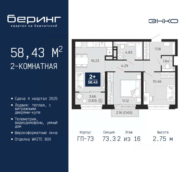 3-комн. квартира от застройщика с предчистовой отделкой в ЖК "Республики 205" на 9 этаже. Общая площадь: 78.41 кв.м., жилая: 37.4 кв.м., площадь просторной кухни-гостиной: 18.6 кв.м. Квартира - распашонка, без проходных комнат, окна выходят на paзные стороны дома. В квартире один балкон и одна лоджия, один совмещенный и один раздельный санузел. Высота потолков 2.6 м.