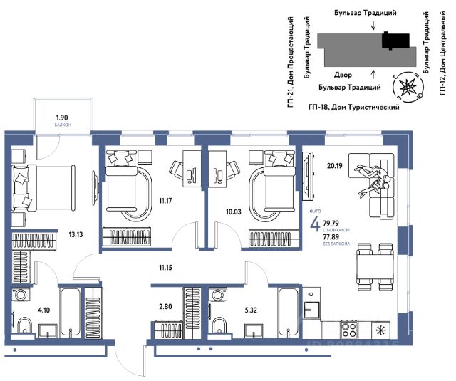 • ✅ Минимальная площадь: 72,4 м²