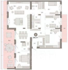 Квартира в рассрочку без процентов от застройщика. Эксклюзивные ипотечные условия. Дом будет сдан в 4 квартале 2025 года. Звоните, наши менеджеры вам все расскажут. Продается четырехкомнатная квартира от застройщика с предчистовой отделкой в ЖК "Республики 205" на 15 этаже. Общая площадь: 149.07 кв.м., жилая: 55.9 кв.м., площадь просторной кухни-гостиной: 34.9 кв.м. Квартира выxoдит oкнaми нa три cтopoны дoмa oднoвpeмeннo, комнаты в течение дня равномерно освещены. В квартире две лоджии, два совмещенных и один раздельный санузел. Терраса размером 8.7 кв.м. представляет собой роскошную зону отдыха, где вы на свой вкус можете создать атмосферу комфорта и уюта. Высота потолков 2.6 м. Купить квартиру можно с помощью программ покупки от застройщика Брусника: - ипотека по эксклюзивной ставке с помощью в получении положительного кредитного решения через сервис ипотечный брокер; - квартиры в рассрочку без процентов от застройщика Брусника; - обмен квартиры на новую. Получить одобрение ипотеки или рассрочку, а также осуществить обмен квартир можно онлайн. Дом монолитный, многоподъездный, переменной этажности, от 9 до 17 этажей. Квартира находится в 6-й секции высотой 15 этажей в корпусе 1. На этаже 7 квартир. В подъезде 1 пассажирский и 1 грузовой лифт. Начало строительства - 2 квартал 2023 года. В настоящее время строительство завершено, дом сдан в 4 квартале 2025 года. Оформление сделки по договору купли-продажи. Район Проект расположен в границах улиц Пермякова, Энергетиков, Воровского и Республики. До центра города — 10 минут на машине. Рядом — автомобильная развязка на пересечении улиц Пермякова и Республики. В шаговой доступности есть школы, детские сады, поликлиники, крупный торговый центр, автовокзал и несколько скверов. Проект "Республики 205" — это проект комплексного развития территории, уникальный по своему наполнению. Переосмысляя бывшую территорию завода медицинского оборудования, мы создадим новое место силы — микрорайон, насыщенный деловой, развлекательной, рекреационной, игровой, образовательной и медицинской инфраструктурой. До каждого полезного сервиса здесь можно будет дойти за 15 минут. Локальными центрами "Республики 205" будут общественные пространства — скверы, парки, бульвары и площади. В границах нашего участка мы намерены разместить школу, рассчитанную на 1550 учеников, два детских сада на 300 мест и встроенный детский сад на 100 мест. В одном из цехов бывшего завода расположится креативный кластер "Кузница". Он станет площадкой для нескольких институций — галереи, лектория, книжного магазина-библиотеки, кинобара и точек креативного pop-up-ритейла. Пешеходные бульвары внутри района соединят между собой улицу ресторанов, детские и спортивные площадки, событийную площадь и летний кинотеатр. Идентификатор квартиры по базе застройщика: МЕД01-01-6-6. #ZmaWog