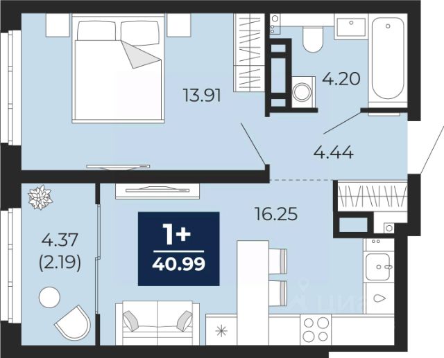 Продается однокомнатная квартира в ЖК "Беринг" на 16 этаже. Квартира без отделки, после получения ключей можно делать ремонт. Общая площадь: 40.99 кв.м., жилая: 13.91 кв.м., площадь просторной кухни-столовой: 16.25 кв.м. Все окна выходят на одну сторону. В квартире одна лоджия, один совмещенный санузел. Высота потолков 2.75 м.