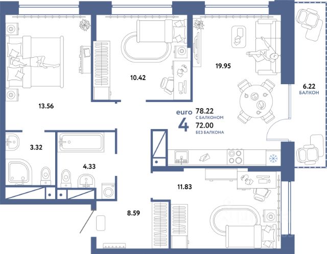 Квартира с кухней-гостиной и четырьмя спальнями в Октябрьском на Туре. Особенности планировки: балкон, вид во двор, второй санузел, гардеробная, мастер-спальня, потолки 3 м и выше, предчистовая отделка, разнесённые спальни. квартиры в нашей базе: ОКТ-10-1-1.2.5. Район Проект расположен на берегу реки, в одном из самых живописных и экологичных районов Тюмени. За последние годы облик района изменился. По соседству с индивидуальной застройкой выросли многоквартирные дома. При проектировании "Октябрьского на Туре" нашей приоритетной задачей стало сохранение природного ландшафта: мы постарались деликатно вписать в него современную архитектуру. Квартал удачно расположен с точки зрения дорожной инфраструктуры. На автомобиле путь до центра города составит 15 минут. Добраться до набережной и главных тюменских достопримечательностей можно и на общественном транспорте. В пешей доступности находится автобусная остановка. Проект По мастер-плану здесь будет восемь домов. Ядро застройки составляют замкнутые кварталы переменной этажности. Их высотность понижается по мере приближения к реке. На углах участка мы разместили башни-доминанты. Одной из достопримечательностей квартала станет парк на Туре — здесь появится зеленая зона протяженностью около 6 километров для пеших и велопрогулок. Смысловая ось квартала — широкая главная улица с высаженными вдоль неё высокими деревьями. Они создают тень и работают как шумо- и пылезащитные экраны. Это место сосредоточения основных пешеходных и транспортных потоков, на сторону которых мы ориентировали большинство коммерческих помещений. Отсюда жители могут свернуть на тихие соседские улицы и попасть на внутриквартальную площадь — ещё одну точку притяжения. #2w1BwT 4-комнатная квартира в новостройке в округе Калининский в городе Тюмень.