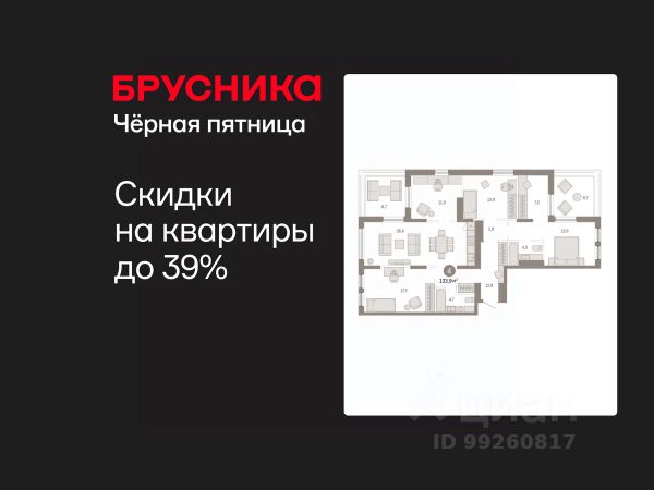 Эксклюзивные ипотечные условия. Квартира в рассрочку без процентов от застройщика. Обмен квартиры на новую. Предложение от застройщика. Дом будет сдан в 4 квартале 2025 года. Квартира в счёт первоначального взноса по программе обмена. Звоните, мы вам все подробно расскажем! Продается 4-комн. квартира с предчистовой отделкой в ЖК "Республики 205" на 17 этаже. Общая площадь: 124.71 кв.м., жилая: 46.8 кв.м., площадь просторной кухни-гостиной: 28.8 кв.м. Квартира без проходных комнат, окна выходят нa три cтopoны дома. В квартире две лоджии, два совмещенных санузла. Высота потолков 2.6 м. Купить квартиру можно с помощью программ покупки от застройщика Брусника: - ипотека по эксклюзивной ставке с помощью в получении положительного кредитного решения через сервис ипотечный брокер; - квартиры в рассрочку без процентов от застройщика Брусника; - обмен квартиры на новую. Получить одобрение ипотеки или рассрочку, а также осуществить обмен квартир можно онлайн. Дом монолитный, многоподъездный, переменной этажности, от 9 до 17 этажей. Квартира находится в 1-й секции высотой 17 этажей в корпусе 1. На этаже 7 квартир. В подъезде 1 пассажирский и 1 грузовой лифт. Начало строительства - 2 квартал 2023 года. Окончание строительства - 4 квартал 2025 года. Оформление сделки по договору долевого участия. Район Проект расположен в границах улиц Пермякова, Энергетиков, Воровского и Республики. До центра города — 10 минут на машине. Рядом — автомобильная развязка на пересечении улиц Пермякова и Республики. В шаговой доступности есть школы, детские сады, поликлиники, крупный торговый центр, автовокзал и несколько скверов. Проект "Республики 205" — это проект комплексного развития территории, уникальный по своему наполнению. Переосмысляя бывшую территорию завода медицинского оборудования, мы создадим новое место силы — микрорайон, насыщенный деловой, развлекательной, рекреационной, игровой, образовательной и медицинской инфраструктурой. До каждого полезного сервиса здесь можно будет дойти за 15 минут. Локальными центрами "Республики 205" будут общественные пространства — скверы, парки, бульвары и площади. В границах нашего участка мы намерены разместить школу, рассчитанную на 1550 учеников, два детских сада на 300 мест и встроенный детский сад на 100 мест. В одном из цехов бывшего завода расположится креативный кластер "Кузница". Он станет площадкой для нескольких институций — галереи, лектория, книжного магазина-библиотеки, кинобара и точек креативного pop-up-ритейла. Пешеходные бульвары внутри района соединят между собой улицу ресторанов, детские и спортивные площадки, событийную площадь и летний кинотеатр. Идентификатор квартиры по базе застройщика: МЕД01-01-1-1. #zIgiMd 4-комнатная квартира от застройщика в Тюменской области.
