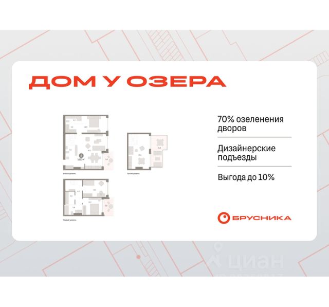 Квартира в счёт первоначального взноса по программе обмена. Звоните, наши менеджеры вам все расскажут! 4-комн. квартира с предчистовой отделкой в ЖК "Дом у озера" на 16 этаже. Общая площадь: 212.32 кв.м., жилая: 56 кв.м., площадь просторной кухни-гостиной: 58 кв.м. Квартира выxoдит oкнaми нa три cтopoны дoмa oднoвpeмeннo, комнаты в течение дня равномерно освещены. В квартире три балкона, три совмещенных и один раздельный санузел. Терраса представляет собой роскошную зону отдыха, где вы на свой вкус можете создать атмосферу комфорта и уюта. Высота потолков 2.74 м. Квартира находится в корпусе 1. Дом монолитный, одноподъездный, высотой 17 этажей. На этаже 6 квартир. В подъезде 1 пассажирский и 1 грузовой лифт. В настоящее время строительство завершено, дом сдан во 2 квартале 2024 года. Оформление сделки по договору купли-продажи. Двухуровневая квартира с кухней-гостиной и четырьмя спальнями в Доме у озера. Особенности планировки: второй санузел, гардеробная, окна в пол, двухуровневая, вид во двор, второй свет, предчистовая отделка, терраса, постирочная, терраса на крыше. квартиры в нашей базе: Дом у озера(А3)-ДМУ01-1-077. "Дом у озера" является продолжением "Европейского квартала". Он расположен в центре заречного района города. В 2030 году здесь появится квартал, состоящий из урбан-вилл, таунхаусов, секционных домов и башни. Вокруг уже сформирована необходимая инфраструктура: детские сады, школы, спортивный комплекс, продуктовые магазины, аптеки, кофейни, рестораны и салоны красоты. Путь до центра города занимает 7 минут на машине. Озеро Тихое — ценный рекреационный ресурс. Брусника вернула ему прежнее значение и сделала новой точкой притяжения для жителей микрорайона. Ключевым элементом концепции благоустройства стала вода. В каждой части квартала архитекторы нашли для нее свою форму. Вдоль пешеходных улиц разместили искусственные ручьи, на центральной площади — фонтан и дождевые сады. Основная точка притяжения жителей — озеро и выходящий на его сторону променад. Здесь мы организуем смотровые площадки и расположим летние террасы кафе и ресторанов. Тесную связь застройки с ландшафтом обеспечивает многоуровневое озеленение. Буфер из деревьев и кустарников по периметру квартала превращается в естественный ветрозащитный экран. Такое решение позволяет создать на территории "Дома у озера" комфортный микроклимат. Подъезды "Дома у озера" с прозрачными входными группами и большими лифтами. Для мест общего пользования архитекторы разработали новую интерьерную коллекцию, вдохновленную эклектичными восточными мотивами. В отделке сочетаются коричневый, желтый и белый цвета, повторяющие колористические решения фасадов. Декоративные перегородки, установленные в лобби, напоминают машрабию — элемент арабской архитектуры в виде узорной решетки. За счет мягкой мебели, многоуровневого освещения теплых оттенков и предметов декора (например, зеркал и картин) холлы воспринимаются как продолжение квартиры. #Z5D66o