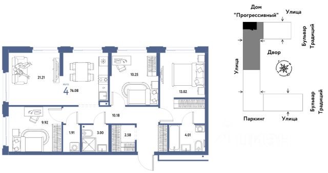 Объявление от застройщика Страна Девелопмент. Покупка квартиры защищена банком. Продается 4комнатная квартира на 8 этаже от застройщика Страна Девелопмент. Площадь квартиры 80,4 кв. м. ЖК "ДОМАШНИЙ" Жилой комплекс "Домашний" это первый цифровой район в Сибири, где жители заходят в парадные по Face ID, автомобили заезжают в паркинг по сканированию номера, а лифт автоматически спускается на первый этаж при открытии домофона. Даже во дворах — USB-розетки и беседки с подогревом. ПРЕИМУЩЕСТВА -Школа, зеленый сквер и пешеходный бульвар прямо внутри квартала -Закрытые дворы у каждого дома для активного и спокойного отдыха -Охрана, видеонаблюдение 24/7 и доступ к камерам в мобильном приложении -Сквозные парадные с прозрачными входными группами, колясочными и велосипедными -Паркинг с въездом по считыванию номеров, системой контроля выбросов CO2, тележками для покупок и велопарковкой -Торговая галерея на первом этаже дома ОТДЕЛКА Квартиры сдаются с предчистовой отделкой: произведена разводка электричества и отопления, выполнена стяжка пола, стены выровнены "под маяк", установлены розетки, выключатели и радиаторы. ДИЗАЙНЕРСКАЯ ОТДЕЛКА При покупке квартиры в ЖК "Домашний" можно включить стоимость ремонта в ипотеку. Пять вариантов на выбор: Хлопковая нить, Серый шторм, Белый камень, Шалфей, Голубой вереск. СПОСОБЫ ПОКУПКИ Сотрудники "Страна Девелопмент" будут сопровождать вас на каждом этапе сделки, помогут получить одобрение по ипотеке или снизить ежемесячный платеж. - ипотека - материнский капитал -100% оплата наличными