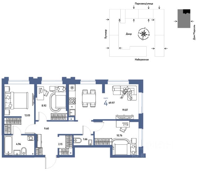 Объявление от застройщика Страна Девелопмент. Покупка квартиры защищена банком. Продается 4комнатная квартира на 5 этаже от застройщика Страна Девелопмент. Площадь квартиры 72,75 кв. м. Стоимость указана без учета акций. Европейский берег 2.0. — это продолжение легендарного жилого комплекса Европейский берег. Он включает все, что нужно для жизни, и даже больше. Этот квартал для тех, кто не готов тратить время на ненужное, жертвовать одним ради другого. Для тех, кто хочет получить все и сразу. Именно поэтому генеральная идея проекта — жилой квартал все включено. Все преимущества включены. Никаких исключений. ПРЕИМУЩЕСТВА Разнообразие планировок: от классических до квартир с мастер-спальней и террасами. Подземный паркинг с кладовыми, охраной и видеонаблюдением 24/7. Ремонт от застройщика: 5 вариантов на выбор. Закрытый двор с площадками и зонами отдыха: мост-акведук, тренажёры, лабиринты, гамаки и шезлонги. ОТДЕЛКА Базовая отделка или готовый ремонт от застройщика. В базовой отделке все черновые работы выполнены, подведены коммуникации, стены оштукатурены под маяк. В ремонт от застройщика входит 5 вариантов отделки, уже включено всё необходимое: от сантехники до кондиционера. СПОСОБЫ ПОКУПКИ Сотрудники "Страны Девелопмент" будут сопровождать вас на каждом этапе сделки, помогут получить одобрение по ипотеке или снизить ежемесячный платеж. - ипотека - материнский капитал - 100% оплата наличными - рассрочка - обмен — это выкуп вашей старой квартиры и зачисление полученных денежных средств в счет стоимости новой квартиры или в качестве первоначального взноса по ипотеке.