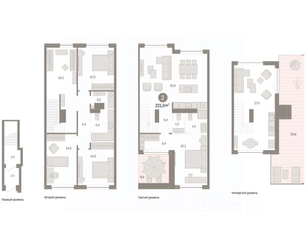 4-комн. квартира с предчистовой отделкой в ЖК "Дом у озера" на 1 этаже. Общая площадь: 169.86 кв.м., жилая: 54.5 кв.м., площадь просторной кухни-гостиной: 22.7 кв.м. Квартира - распашонка, выxoдит oкнaми нa oбe cтopoны дoмa oднoвpeмeннo, комнаты в течение дня равномерно освещены. В квартире один балкон и одна лоджия, три совмещенных и один раздельный санузел. Высота потолков 2.7 м. Дом монолитный, многоподъездный, переменной этажности, от 1 до 8 этажей. Квартира находится в 9-й секции высотой 1 этаж в корпусе 2. На этаже 5 квартир. Окончание строительства - 2 квартал 2026 года. Оформление сделки по договору долевого участия. Продаётся с паркингом и кладовой. Квартира с кухней-гостиной и четырьмя спальнями в Доме у озера. Особенности планировки: вид во двор, второй санузел, гардеробная, зенитное окно, лоджия, мастер-спальня, окна в пол, окно в санузле, отдельный вход, постирочная, предчистовая отделка, таунхаус, терраса на крыше, тёплая лоджия. квартиры в нашей базе: ДМУ-02-9-9.1.2. "Дом у озера" является продолжением "Европейского квартала". Он расположен в центре заречного района города. В 2030 году здесь появится квартал, состоящий из урбан-вилл, таунхаусов, секционных домов и башни. Вокруг уже сформирована необходимая инфраструктура: детские сады, школы, спортивный комплекс, продуктовые магазины, аптеки, кофейни, рестораны и салоны красоты. Путь до центра города занимает 7 минут на машине. Озеро Тихое — ценный рекреационный ресурс. Брусника вернула ему прежнее значение и сделала новой точкой притяжения для жителей микрорайона. Ключевым элементом концепции благоустройства стала вода. В каждой части квартала архитекторы нашли для нее свою форму. Вдоль пешеходных улиц разместили искусственные ручьи, на центральной площади — фонтан и дождевые сады. Основная точка притяжения жителей — озеро и выходящий на его сторону променад. Здесь мы организуем смотровые площадки и расположим летние террасы кафе и ресторанов. Тесную связь застройки с ландшафтом обеспечивает многоуровневое озеленение. Буфер из деревьев и кустарников по периметру квартала превращается в естественный ветрозащитный экран. Такое решение позволяет создать на территории "Дома у озера" комфортный микроклимат. Подъезды "Дома у озера" с прозрачными входными группами и большими лифтами. Для мест общего пользования архитекторы разработали новую интерьерную коллекцию, вдохновленную эклектичными восточными мотивами. В отделке сочетаются коричневый, желтый и белый цвета, повторяющие колористические решения фасадов. Декоративные перегородки, установленные в лобби, напоминают машрабию — элемент арабской архитектуры в виде узорной решетки. За счет мягкой мебели, многоуровневого освещения теплых оттенков и предметов декора (например, зеркал и картин) холлы воспринимаются как продолжение квартиры.