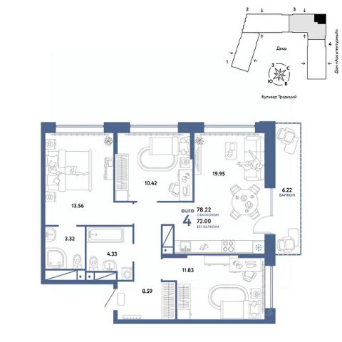 Новая квартира в ЖК "Домашний" напрямую от федеральной группы компаний "Страна Девелопмент". Финансовый партнер — банк "ДОМ.РФ". Продается 4комнатная квартира на 5 этаже от застройщика Страна Девелопмент. Площадь квартиры 77,89 кв. м. ЖК "ДОМАШНИЙ" Жилой комплекс "Домашний" это первый цифровой район в Сибири, где жители заходят в парадные по Face ID, автомобили заезжают в паркинг по сканированию номера, а лифт автоматически спускается на первый этаж при открытии домофона. Даже во дворах — USB-розетки и беседки с подогревом. ПРЕИМУЩЕСТВА -Школа, зеленый сквер и пешеходный бульвар прямо внутри квартала -Закрытые дворы у каждого дома для активного и спокойного отдыха -Охрана, видеонаблюдение 24/7 и доступ к камерам в мобильном приложении -Сквозные парадные с прозрачными входными группами, колясочными и велосипедными -Паркинг с въездом по считыванию номеров, системой контроля выбросов CO2, тележками для покупок и велопарковкой -Торговая галерея на первом этаже дома ОТДЕЛКА Квартиры сдаются с предчистовой отделкой: произведена разводка электричества и отопления, выполнена стяжка пола, стены выровнены "под маяк", установлены розетки, выключатели и радиаторы. ДИЗАЙНЕРСКАЯ ОТДЕЛКА При покупке квартиры в ЖК "Домашний" можно включить стоимость ремонта в ипотеку. Пять вариантов на выбор: Хлопковая нить, Серый шторм, Белый камень, Шалфей, Голубой вереск. СПОСОБЫ ПОКУПКИ Сотрудники "Страна Девелопмент" будут сопровождать вас на каждом этапе сделки, помогут получить одобрение по ипотеке или снизить ежемесячный платеж. - ипотека - материнский капитал -100% оплата наличными