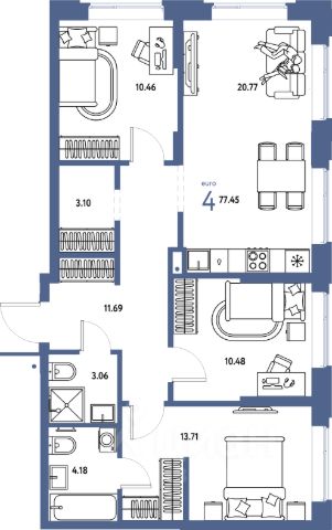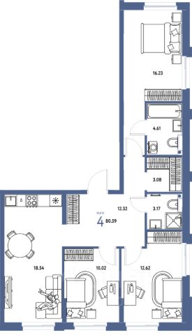 Продаётся 4-комнатная квартира в строящемся доме (Дом "Экологичный" (ГП-19)), срок сдачи: IV-кв. 2026, общей площадью 77.45 кв.м., на 6 этаже. Новый микрорайон "Домашний" от группы компаний "Страна Девелопмент" расположен в Калининском округе Тюмени, в районе аэропорта "Плеханово".