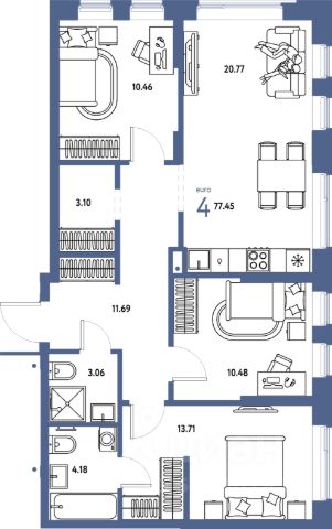 Продаётся 4-комнатная квартира в строящемся доме (Дом "Перспективный" (ГП-28)), срок сдачи: II-кв. 2028, общей площадью 89.1 кв.м., на 12 этаже. Новый микрорайон "Домашний" от группы компаний "Страна Девелопмент" расположен в Калининском округе Тюмени, в районе аэропорта "Плеханово".