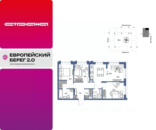 Объявление от застройщика Страна Девелопмент. Покупка квартиры защищена банком. Продается 4комнатная квартира на 3 этаже от застройщика Страна Девелопмент. Площадь квартиры 72,58 кв. м. Стоимость указана без учета акций. Европейский берег 2.0. — это продолжение легендарного жилого комплекса Европейский берег. Он включает все, что нужно для жизни, и даже больше. Этот квартал для тех, кто не готов тратить время на ненужное, жертвовать одним ради другого. Для тех, кто хочет получить все и сразу. Именно поэтому генеральная идея проекта — жилой квартал все включено. Все преимущества включены. Никаких исключений. ПРЕИМУЩЕСТВА Разнообразие планировок: от классических до квартир с мастер-спальней и террасами. Подземный паркинг с кладовыми, охраной и видеонаблюдением 24/7. Ремонт от застройщика: 5 вариантов на выбор. Закрытый двор с площадками и зонами отдыха: мост-акведук, тренажёры, лабиринты, гамаки и шезлонги. ОТДЕЛКА Базовая отделка или готовый ремонт от застройщика. В базовой отделке все черновые работы выполнены, подведены коммуникации, стены оштукатурены под маяк. В ремонт от застройщика входит 5 вариантов отделки, уже включено всё необходимое: от сантехники до кондиционера. СПОСОБЫ ПОКУПКИ Сотрудники "Страны Девелопмент" будут сопровождать вас на каждом этапе сделки, помогут получить одобрение по ипотеке или снизить ежемесячный платеж. - ипотека - материнский капитал - 100% оплата наличными - рассрочка - обмен — это выкуп вашей старой квартиры и зачисление полученных денежных средств в счет стоимости новой квартиры или в качестве первоначального взноса по ипотеке.