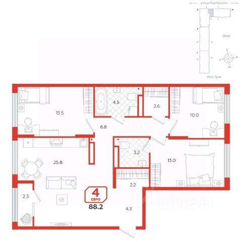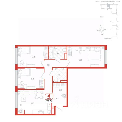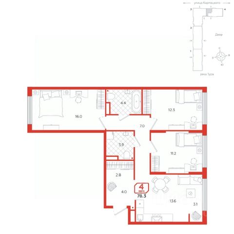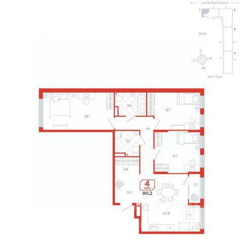 Просторная четырехкомнатная квартира отличается продуманной планировкой и элегантным дизайном, что создаёт идеальные условия для комфортного проживания. Окна выходят на две стороны, что наполняет пространство естественным светом и создает приятную атмосферу для жизни. Просторная кухня-гостиная разделена на несколько функциональных зон: здесь имеется выделенная зона для приготовления пищи, столовая зона для семейных ужинов, а также уютная зона отдыха. Это пространство идеально подходит для встреч с друзьями и семейных вечеров. Кроме того, предусмотрено место для теплой лоджии, что добавляет дополнительный уровень уюта и возможностей для организации отдыха. Две детские спальни с большими окнами позволяют естественному свету заполнять комнаты, создавая светлую и приятную обстановку для игры и учёбы. Эти комнаты можно легко адаптировать под потребности разновозрастных детей, добавляя элементы дизайна и хранения, которые соответствуют их интересам и возрасту. Угловая мастер-спальня предоставляет уникальные удобства: она включает личный санузел, который обеспечивает дополнительный комфорт и приватность. Также в спальне есть пространство с окном, которое можно использовать как гардеробную или организовать рабочее место. Это дает возможность эффективно использовать площадь и создать идеальное место для работы или хранения вещей. Эта квартира станет великолепным выбором для семей, стремящихся к качеству жизни, удобству и современному комфорту. Каждый элемент здесь продуман для удобства и стиля, обеспечивая идеальные условия для жизни и отдыха.