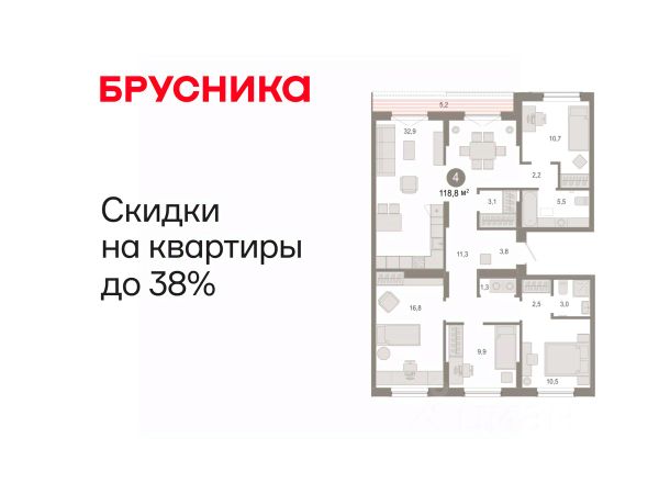 Квартира в счёт первоначального взноса по программе обмена. Квартира с кухней-гостиной и четырьмя спальнями в Октябрьском на Туре. Особенности планировки: гардеробная, вид во двор, лоджия, разнесённые спальни, предчистовая отделка, мастер-спальня, постирочная. квартиры в нашей базе: ОКТ09-Ж2.7.1. Район Проект расположен на берегу реки, в одном из самых живописных и экологичных районов Тюмени. За последние годы облик района изменился. По соседству с индивидуальной застройкой выросли многоквартирные дома. При проектировании "Октябрьского на Туре" нашей приоритетной задачей стало сохранение природного ландшафта: мы постарались деликатно вписать в него современную архитектуру. Квартал удачно расположен с точки зрения дорожной инфраструктуры. На автомобиле путь до центра города составит 15 минут. Добраться до набережной и главных тюменских достопримечательностей можно и на общественном транспорте. В пешей доступности находится автобусная остановка. Проект По мастер-плану здесь будет восемь домов. Ядро застройки составляют замкнутые кварталы переменной этажности. Их высотность понижается по мере приближения к реке. На углах участка мы разместили башни-доминанты. Одной из достопримечательностей квартала станет парк на Туре — здесь появится зеленая зона протяженностью около 6 километров для пеших и велопрогулок. Смысловая ось квартала — широкая главная улица с высаженными вдоль неё высокими деревьями. Они создают тень и работают как шумо- и пылезащитные экраны. Это место сосредоточения основных пешеходных и транспортных потоков, на сторону которых мы ориентировали большинство коммерческих помещений. Отсюда жители могут свернуть на тихие соседские улицы и попасть на внутриквартальную площадь — ещё одну точку притяжения.Квартира в счёт первоначального взноса по программе обмена. #2wcDBi