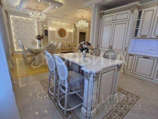 Двухуровневая квартира в квартале премиум-класса. Это исторический центр города: рядом главные улицы, набережная, топовая гастрономия — и всё это в окружении памятников архитектуры. На первом уровне предусмотрена мастер-спальня со сквозной гардеробной, детская, кухня-столовая, гостиная и ванная с окном. Второй уровень — приватный. Здесь располагаются спальня, комната отдыха, постирочная и гардеробная. С террасы площадью 103,1 м² на последнем этаже открывается вид на весь центр. Здесь можно организовать летнюю кухню, камерный кинотеатр с игровой или фитнес-зону. Выход на террасу со второго уровня. Окна выходят на три стороны, поэтому в комнаты проникает много естественного света. Высота окон — 2,4 метра. В столовой, гостиной и спальне спроектированы радиусные окна для бесшовного обзора. Профили выполнены из золотистого алюминия. Витражи с тройным остеклением и двухкамерным стеклопакетом. Они не пропускают холод и жар — это сохраняет комфортный микроклимат в квартире. Внутри пола встроены бесшумные конвекторы. Они создают естественную циркуляцию теплого воздуха и не загораживают вид из окна. Узнать детали проекта и договориться о персональной презентации можно по номеру, указанному в объявлении. Продам 5-комнатную квартиру элитные в Тюмени.