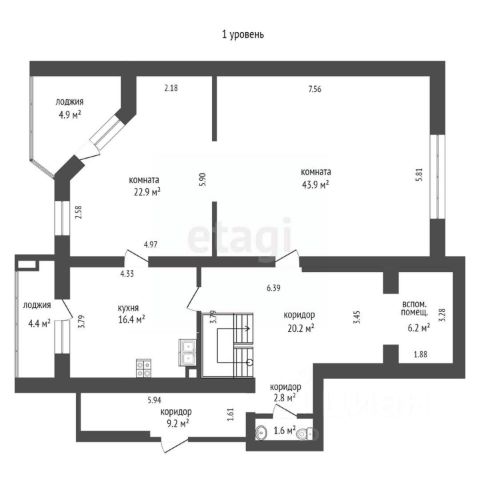 Общая площадь - 119,1 м2.