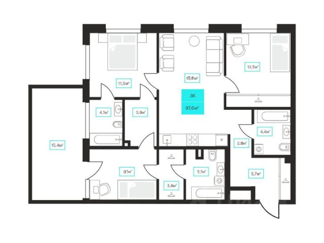 Продаётся 3-комнатная квартира в строящемся доме (ГП-1), срок сдачи: IV-кв. 2028, общей площадью 91.51 кв.м., на 11 этаже. Новый жилой комплекс "Континент" от Специализированного застройщика "Расцвет" расположен по адресу: г. Тюмень, по ул. Червишевский Тракт.