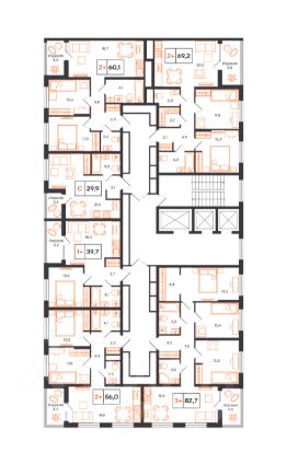 Квартира с кухней-гостиной и тремя спальнями в Октябрьском на Туре. Особенности планировки: вид во двор, гардеробная, лоджия, мастер-спальня, предчистовая отделка, разнесённые спальни. квартиры в нашей базе: ОКТ09-Ж3.2.2. Район Проект расположен на берегу реки, в одном из самых живописных и экологичных районов Тюмени. За последние годы облик района изменился. По соседству с индивидуальной застройкой выросли многоквартирные дома. При проектировании "Октябрьского на Туре" нашей приоритетной задачей стало сохранение природного ландшафта: мы постарались деликатно вписать в него современную архитектуру. Квартал удачно расположен с точки зрения дорожной инфраструктуры. На автомобиле путь до центра города составит 15 минут. Добраться до набережной и главных тюменских достопримечательностей можно и на общественном транспорте. В пешей доступности находится автобусная остановка. Проект По мастер-плану здесь будет восемь домов. Ядро застройки составляют замкнутые кварталы переменной этажности. Их высотность понижается по мере приближения к реке. На углах участка мы разместили башни-доминанты. Одной из достопримечательностей квартала станет парк на Туре — здесь появится зеленая зона протяженностью около 6 километров для пеших и велопрогулок. Смысловая ось квартала — широкая главная улица с высаженными вдоль неё высокими деревьями. Они создают тень и работают как шумо- и пылезащитные экраны. Это место сосредоточения основных пешеходных и транспортных потоков, на сторону которых мы ориентировали большинство коммерческих помещений. Отсюда жители могут свернуть на тихие соседские улицы и попасть на внутриквартальную площадь — ещё одну точку притяжения. #zssccu