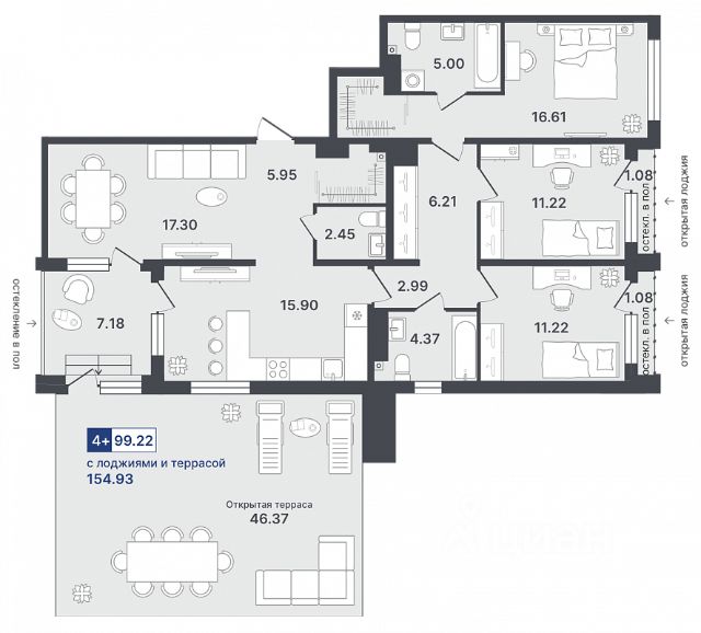Квартира расположена на верхнем 17-м этаже, что имеет неоспоримые преимущества - шикарные виды, отсутствие пыли, выхлопных газов и насекомых, отсутствие шумных соседей сверху, а наличие тех.этажа исключает риск протекания кровли.