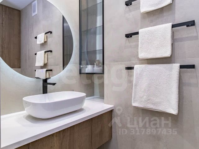 В квартире два санузла, оснащенных сантехникой премиум-класса и мебелью, выполненной на заказ. Продуманная гардеробная с системой Titan GS позволит вам организовать хранение вещей максимально эффективно, а множество дополнительных мест для хранения обеспечат порядок и уют. Отдельная постирочная комната оборудована стиральной и сушильной машинами LG, водонагревателем Electrolux и вместительным хозяйственным шкафом.