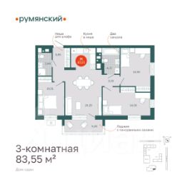 Представляем вам 3х комнатную квартиру с кухней-гостиной в жилом комплексе "Новин".