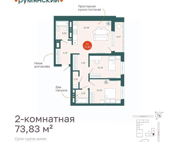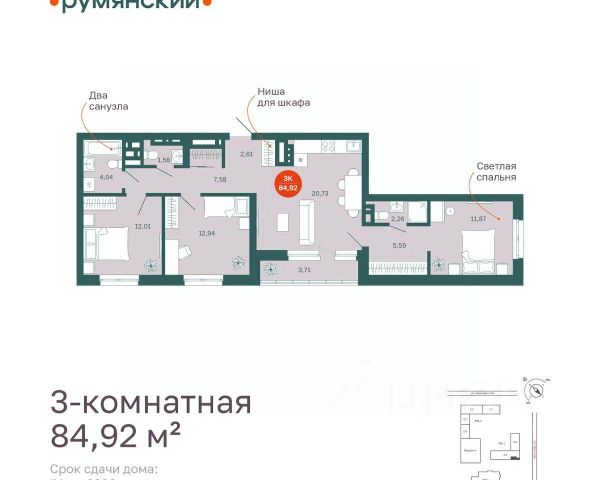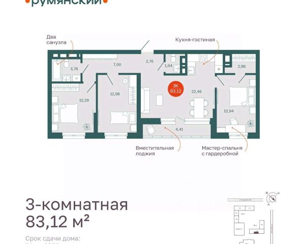 Просторная кухня гостиная, 2 спальные зоны, мастерская (можно под детскую), в коридоре 3 функциональных встроенных шкафа (1-входная зона, 2-обувной шкаф, 3-шкаф для хранения полотенец, постельного белья, пледов, подушек и т.д.), 2 санузла. Три окна выходят во двор, одно окно на другую сторону. В квартире установлены датчики теплого пола, кондиционер, счетчики на холодную и горячую воду, электроснабжение, отопление, система телеметрии - передача данных по потреблению воды, электричества, отопления автоматически передаются в управляющую компанию. Особенность комплекса: закрытый двор без машин, комплексная система видеонаблюдения и круглосуточная охрана, прозрачные двери подъезда, домофон внутри подъезда, парковки по внешнему периметру двора, подземный теплый паркинг (прямо с уровня паркинга работают лифты в подъезды), во дворе вместо асфальта уложена брусчатка, установлено спортивное и игровое оборудование, есть велодорожки и зоны отдыха.