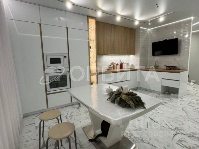 В квартире останется встроенная шикарная, дорогая кухня по индивидуальному заказу, со всей встроенной техникой ( дух.шкаф, микроволновая печь, индукционная плита, вытяжка, посуд.машина, измельчитель пищевых отходов, холодильная камера, морозильная камера), стол с автолифтом.