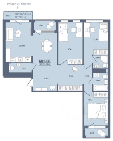 Уют и гармония в двух уровнях Продаётся уникальная 4-комнатная квартира с высоким уровнем отделки и дизайнерским интерьером. Эта квартира идеальна для тех, кто ценит высокое качество жизни, индивидуальность пространства и безупречный комфорт. Адрес: Центральная улица г. Тюмени Площадь квартиры: 104,7 м² Планировка: — Просторная гостиная совмещённая с кухней — Три изолированные спальни разного размера — Санузел с тёплыми полами и качественной сантехникой — Отделанная прихожая с удобной зоной хранения вещей — Трехъярусный холл с дополнительным освещением Освещение: Каждая оснащена оригинальным набором света, включая современные светодиодные панели и точечные светильники, которые зрительно расширяют пространство и создают атмосферу расслабленности и гармонии. Дополнительно установлены скрытые диодные ленты для мягкого вечернего света. Ремонт: Весь ремонт произведён строго по профессиональному дизайн-проекту, использовано исключительно качественное и дорогостоящее сырьё. Полы покрыты высококачественным ламинатом, стены оклеены декоративными обоями ведущих брендов, потолок представляет собой систему многослойных натяжных потолков. Санузел: Прихожая и санузел декорированы итальянской плиткой премиум класса, дополнительно установлена система подогрева пола. Дополнительные плюсы: Три просторных балкона с панорамными окнами, оснащённые удобным оборудованием для сушки белья и релаксации. Балконное покрытие выполнено качественной кафельной плиткой. Оборудование: Оставляем всю современную технику и предметы обстановки: холодильник премиум-класса, посудомоечную машину, встроенную кухню с технологичными фильтрами для воды, электрический накопительный нагреватель, два мощных кондиционера, позволяющих поддерживать оптимальный микроклимат независимо от сезона, и две точки беспроводного интернета с мощными роутерами. Безопасность: Здание оборудовано общедомовым видеонаблюдением с функцией записи. Комфорт соседства: По-настоящему добрые соседи и ответственная управляющая компания, директор которой живёт в нашем подъезде и лично контролирует решение любых возникающих вопросов. Инфраструктура: Расположение центральной части города гарантирует быструю доступность всей необходимой инфраструктуры: детских садов, школ, торговых центров, медицинских учреждений и общественных заведений. Покупатели получат возможность наслаждаться жизнью в прекрасном пространстве с уникальными элементами дизайна и продуманным функционалом, которое позволит забыть обо всех бытовых заботах и сосредоточиться на приятностях жизни. Если вам важны красота, порядок и высокий уровень комфорта вашей личной среды обитания, эта квартира станет вашим идеальным выбором! Бесплатное оформление ипотеки по сниженным ставкам от банков-партнеров. Подаем заявку онлайн в несколько банков сразу. Одобрение в течение 1 рабочего дня. Дополнительно оплачивается комиссия с покупателя. Номер объекта: 3617362