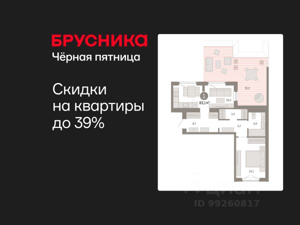 Квартира в счёт первоначального взноса по программе обмена. Информация по телефону, наши менеджеры вам все расскажут! Продается 1-комн. квартира с предчистовой отделкой в Кварталы "На Минской" на 8 этаже. Общая площадь: 83.14 кв.м. Высота потолков 2.7 м. Дом монолитный, многоподъездный, переменной этажности, от 7 до 11 этажей. Квартира находится в 5-й секции высотой 11 этажей в корпусе 2. На этаже 8 квартир. В подъезде 1 пассажирский и 1 грузовой лифт. Окончание строительства - 1 квартал 2027 года. Оформление сделки по договору долевого участия. Квартира с кухней-гостиной и одной спальней в кварталах "На Минской". Особенности планировки: окна на две стороны, гардеробная, вид во двор, предчистовая отделка, терраса на крыше. квартиры в нашей базе: МНС02-Ж5.8.6. В сердце города Кварталы "На Минской" находятся в самом центре. За десять минут можно дойти до площади 400-летия Тюмени и Большого Драматического театра, Тюменского индустриального и медицинского университетов, спортивного комплекса "Строймаш", ТРЦ "Гудвин" и "Премьер", Тюменского технопарка. Поблизости много детских садов, школ и поликлиник. Пространство разного опыта Создавая кварталы "На Минской" мы вдохновлялись Хакскими дворами в Берлине и улицей Давида Агмашенебели в Тбилиси. И первые и вторая — яркие разнообразные пространства, сформированные прогрессивными архитекторами и притягивающие городских интеллектуалов. Престижная недвижимость здесь соседствует с барами, ресторанами, креативными кластерами и бюро, дизайнерскими лавками. Полезные улицы Кварталы "На Минской" свяжет сеть променадов, автомобильных проездов и велодорожек. Уличный фронт проекта мы сформируем с помощью аллейной посадки деревьев. Они создадут тень для ресторанов и кафе на первых этажах, визуально отделят проезжую и пешеходную части, снизят объём пыли и уровень шума. Мы реализуем проект в районе с развитой базовой инфраструктурой. И поэтому тщательно подошли к программированию коммерции, посчитав, что её основная задача — "закрывать" более высокие потребности жителей. Здесь может появиться пекарня с вкусными круассанами, турагентство на случай, если захочется перезимовать в Сочи, массажный кабинет, ресторан, когда надоело есть дома и многое другое. #zsZaMD