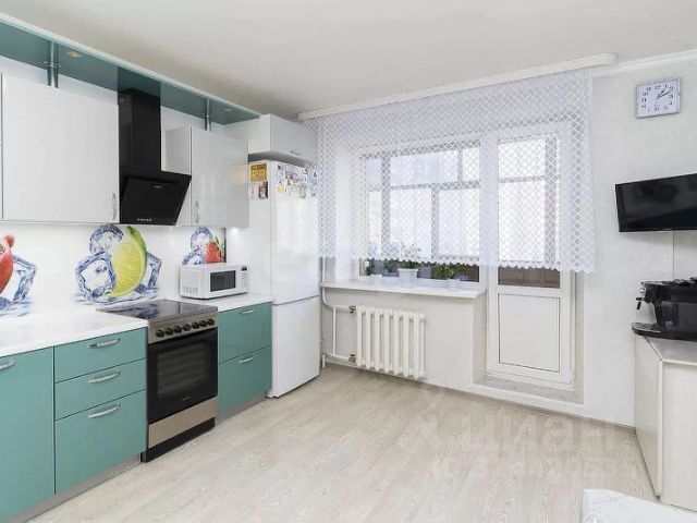 После продажи остается кухонный гарнитур, вытяжка, шкаф-купе, стеллаж под книги, двухспальная кровать.