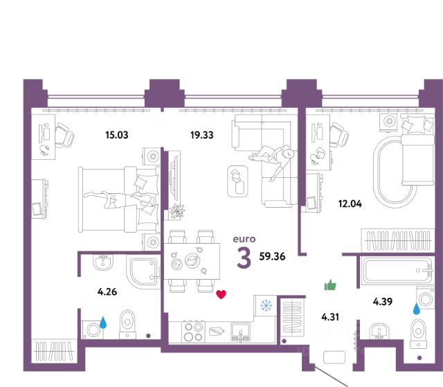 Застройщиком спроектированы квартиры с различными планировками - от студий до четырехкомнатных общей площадью от 28,07 до 131,51 кв. м. Отделочные работы не осуществляются.