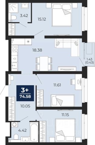 Продается трехкомнатная квартира с предчистовой отделкой в ЖК "Прео" на 3 этаже. Общая площадь: 74.58 кв.м., жилая: 37.88 кв.м., площадь просторной кухни-столовой: 18.38 кв.м. Комнаты изолированные, все окна выходят на одну сторону. В квартире один балкон, два совмещенных санузла. Высота потолков 2.7 м. Дом монолитный, трехподъездный, переменной этажности, от 14 до 23 этажей. Квартира находится в 3-й секции высотой 14 этажей в корпусе 206. На этаже 6 квартир. В подъезде 1 пассажирский и 1 грузовой лифт. Окончание строительства - 4 квартал 2025 года. Оформление сделки по договору долевого участия. Преображенский — один из самых привлекательных районов для жизни! Это полностью самостоятельный жилой район с точки зрения инфраструктуры. Преображенский находится между Московским и Червишевским трактами в квартале улиц Закалужская — Вьюжная — Александра Протозанова. Не нужно ждать, когда появится инфраструктура — переезжайте на всё готовое. Вблизи расположены действующие школа и детский сад. В этом году откроется еще один сад, а в следующем году — школа. По соседству с Преображенским запланировано строительство городского парка "Комарово" площадью 38 гектар. За 10 минут можно доехать на автомобиле до крупных ТРЦ: "Лента", "Кристалл", "Леруа Мерлен", "Метро" и "Ашан". С 2018 года в районе открыт Соседский центр — пространство, созданное для формирования добрососедской среды, совместного досуга, общения и реализации соседских инициатив. Здесь проходят встречи соседей, а также сами жители района организовывают мероприятия. Организатором такого события может стать любой желающий. В квартирах выполнена качественная предчистовая отделка. Гладкие стены с финишным выравниванием по маякам. Ровный потолок для установки натяжного потолка. Установлены пятикамерные окна с двойным стеклопакетом (3 стекла). Дизайнерские холлы с видеонаблюдением, безбарьерным и прозрачным входом всегда светло и спокойно. На первом этаже есть просторные колясочные, где все жители могут оставлять свои коляски и велосипеды. В Преображенском есть всё, что нужно для активного отдыха и занятий спортом. Мы сделали большое футбольное поле с безопасным покрытием. Также установили хоккейный корт, который оборудован по всем необходимым стандартам. Во дворах можно делать упражнения на специальных площадках с турниками. Весь район мы обустроили велодорожками, которые связаны в единый маршрут. У нас есть сухие фонтаны, бьющие из земли, деревья, веревки, сетки, скалодром, газон, песок и резинка — осталось просто дать своему ребенку право на свободную игру. По-настоящему хорошие дворы — это те, которые дети предпочитают соцсетям и телевизору. Аккредитация в банках: ПАО "Банк Уралсиб", ОАО "Альфа-Банк", ПАО "Газпромбанк", "Сбербанк России", ПАО Банк "ВТБ" и других. #26zCmC