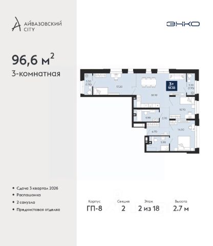 Двухкомнатная квартира от застройщика с предчистовой отделкой в ЖК "Айвазовский City" на 7 этаже. Общая площадь: 74.2 кв.м., жилая: 28 кв.м., площадь просторной кухни-столовой: 20.1 кв.м. Квартира - распашонка, без проходных комнат, окна выходят на paзные стороны дома. В квартире одна лоджия, два совмещенных санузла. Высота потолков 2.7 м. Дом монолитный, многоподъездный, переменной этажности, от 14 до 24 этажей. Квартира находится в 3-й секции высотой 24 этажа в корпусе ГП-8. На этаже 7 квартир. В подъезде 1 пассажирский и 1 грузовой лифт. Окончание строительства - 3 квартал 2026 года. Оформление сделки по договору долевого участия. Новый жилой район располагается в живописном месте на берегу Туры в центральной части города. Принципиально новое пространство для жизни в центре современного города для тех, чьи мечты сбываются, кто нацелен на постоянный рост, перемены к лучшему для себя и своих близких. Каждая деталь Айвазовский City вдохновляет и заряжает на новые свершения: авторская архитектура, сбалансированная продуманная инфраструктура, дизайнерские дворы со спортивными и детскими площадками, парковые зоны с фонтанами, водный канал, украшающий центральный прогулочный маршрут района и многое другое. В 2019 года проект стал лауреатом престижной премии Urban Awards 2019 в номинации "Лучший строящийся региональный жилой комплекс бизнес-класса". Главная особенность Айвазовский City - соседство разных архитектурных школ в рамках одного дома. Изысканная классика, выразительная эклектика и оригинальный модерн - жить в одном из таких домов настоящий повод для гордости. Айвазовский City это идеальное сочетание комфорта, технологий и развитой инфраструктуры. Вход в подъезд возможен с улицы и со двора. Отправляясь на работу или за покупками, жители могут выйти с внешней стороны дома, а для прогулки с ребенком со стороны двора. Экологически чистые материалы и энергосберегающие технологии, качественное освещение общественных зон, видеонаблюдение по всей территории жилого района (в том числе в подъездах, лифтах и в подземном паркинге), закрытые дворы с доступом только для жителей Айвазовский City. Часть домов в Айвазовский City будут оснащены подземным паркингом. Востребованный в нашем климатическом поясе формат хранения автомобилей защитит собственность владельца в любое время года. Аккредитация в банках: "Сбербанк России", ПАО "Газпромбанк", ПАО Банк "ВТБ", ОАО "Альфа-Банк", ПАО "Промсвязьбанк" и других. #z6SFge