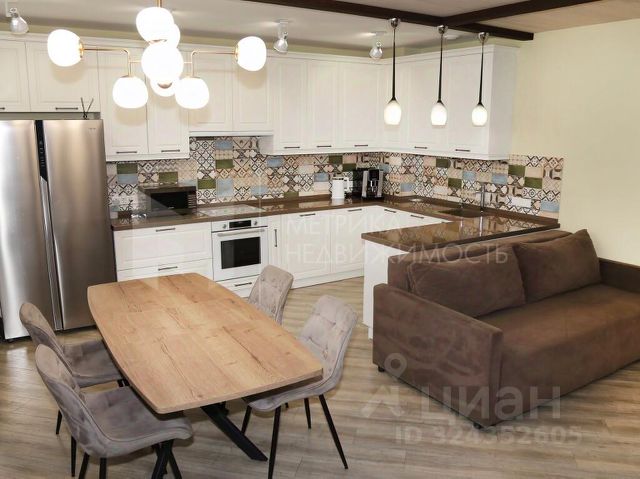 Планировка включает три спальни 20,9 кв.м, 18,6 кв.м, 16 кв.м, большой гардероб, просторную кухню-гостиную 32,7 кв.м объединенную с зоной отдыха, где многоуровневое освещение, включая трековые светильники, стильные люстры и скрытую LED-подсветку, создает разноплановый эффект. Кухонный гарнитур со столешницей из цельного натурального камня (Мексика) укомплектован встроенной техникой премиум-класса, кухонный стол изготовлен на заказ. Современная ванная комната с душевой зоной и ванной из натурального камня. Сан.узел с инсталляцией. Отделка керамический гранит (Италия) и мозаика. Встроенная стиральная машинка, сушилка, боллер есть, но не использовался (своя котельная, горячая вода без отключений) Дополнительные преимущества — изолированная гардеробная. Лоджия 7,7 кв.м с теплым полом и вместительной морозильной камерой.