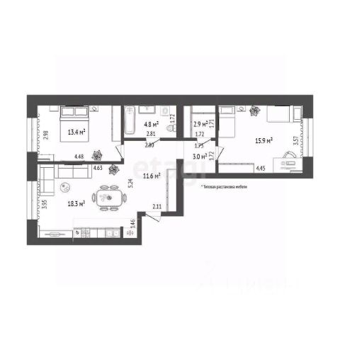 Квартира в счёт первоначального взноса по программе обмена. По всем вопросам обращайтесь в офис продаж, мы вам все подробно расскажем! 3-комн. квартира с предчистовой отделкой в ЖК "Республики 205" на 4 этаже. Общая площадь: 88.32 кв.м., жилая: 29.4 кв.м., площадь просторной кухни-гостиной: 23.1 кв.м. Квартира - распашонка, без проходных комнат, окна выходят на paзные стороны дома. В квартире два балкона, два совмещенных санузла. Высота потолков 2.7 м. Купить квартиру можно с помощью программ покупки от застройщика Брусника: - ипотека по эксклюзивной ставке с помощью в получении положительного кредитного решения через сервис ипотечный брокер; - квартиры в рассрочку без процентов от застройщика Брусника; - обмен квартиры на новую. Получить одобрение ипотеки или рассрочку, а также осуществить обмен квартир можно онлайн. Дом монолитный, многоподъездный, переменной этажности, от 7 до 25 этажей. Квартира находится в 5-й секции высотой 9 этажей в корпусе 3-1. На этаже 5 квартир. В подъезде 1 пассажирский и 1 грузовой лифт. Окончание строительства - 1 квартал 2027 года. Оформление сделки по договору долевого участия. Район Проект расположен в границах улиц Пермякова, Энергетиков, Воровского и Республики. До центра города — 10 минут на машине. Рядом — автомобильная развязка на пересечении улиц Пермякова и Республики. В шаговой доступности есть школы, детские сады, поликлиники, крупный торговый центр, автовокзал и несколько скверов. Проект "Республики 205" — это проект комплексного развития территории, уникальный по своему наполнению. Переосмысляя бывшую территорию завода медицинского оборудования, мы создадим новое место силы — микрорайон, насыщенный деловой, развлекательной, рекреационной, игровой, образовательной и медицинской инфраструктурой. До каждого полезного сервиса здесь можно будет дойти за 15 минут. Локальными центрами "Республики 205" будут общественные пространства — скверы, парки, бульвары и площади. В границах нашего участка мы намерены разместить школу, рассчитанную на 1550 учеников, два детских сада на 300 мест и встроенный детский сад на 100 мест. В одном из цехов бывшего завода расположится креативный кластер "Кузница". Он станет площадкой для нескольких институций — галереи, лектория, книжного магазина-библиотеки, кинобара и точек креативного pop-up-ритейла. Пешеходные бульвары внутри района соединят между собой улицу ресторанов, детские и спортивные площадки, событийную площадь и летний кинотеатр. Идентификатор квартиры по базе застройщика: РСП03. #Z52c1W