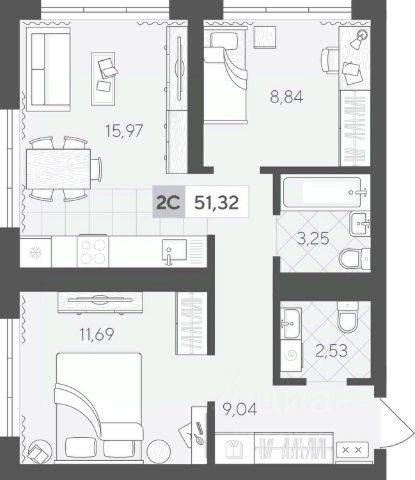Продаётся 2-комнатная квартира в строящемся доме (ГП 2 (Сергея Корепанова, 34)), срок сдачи: IV-кв. 2027, общей площадью 72.89 кв.м., на 8 этаже. Новый жилой комплекс "Скандиа. Квартал у Леса" от Специализированного застройщика "СКАНДИА У ЛЕСА" расположен в г. Тюмень на ул. Бориса Прудаева.