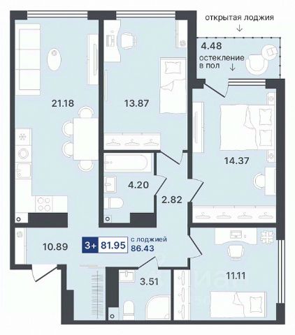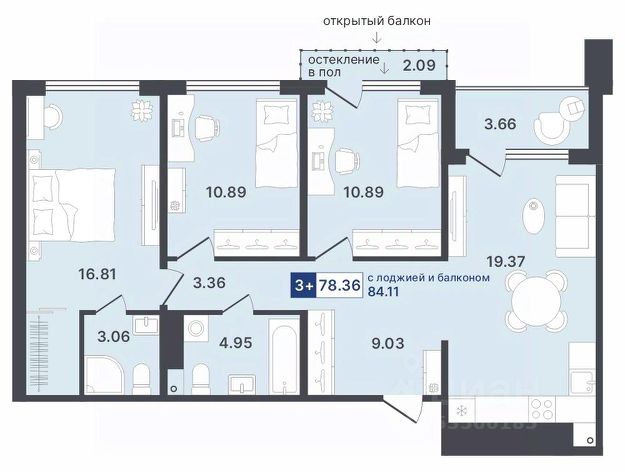 Общая площадь 84,9 кв.м, широкий коридор, гостинная, кухня 17 кв.м и 2 изолированные комнаты, совмещенный санузел, просторный душевой уголок с подиумом (установлен бойлер), гардеробная, застекленная и обшитая деревом лоджия.