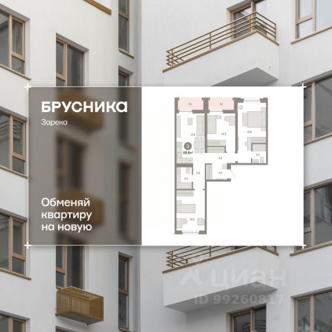 3-комн. квартира от застройщика с предчистовой отделкой в ЖК "Зарека" на 5 этаже. Общая площадь: 89.76 кв.м. Высота потолков 2.7 м. Дом монолитный, многоподъездный, переменной этажности, от 6 до 16 этажей. Квартира находится во 2-й секции высотой 9 этажей в корпусе 5-2. На этаже 3 квартиры. В подъезде 1 пассажирский и 1 грузовой лифт. Окончание строительства - 4 квартал 2026 года. Оформление сделки по договору долевого участия. Продаётся с паркингом и кладовой. Квартира с кухней-гостиной и тремя спальнями в жилом районе "Зарека". Особенности планировки: вид во двор, лоджия, мастер-спальня, предчистовая отделка, разнесённые спальни. квартиры в нашей базе: ЗРК05.2-Ж2.5.2. Проект На планировочную структуру "Зареки" повлияла близость к автомобильному мосту Челюскинцев. Мы расположили жилые здания так, чтобы они постепенно удалялись от проезжей части. Приём напоминает лесенку: чем сильнее мост возвышается над участком застройки, тем дальше по отношению к нему стоят дома. Этот ступенчатый сдвиг позволил нам сформировать буфер между кварталами и оживлённой магистралью. Мы намерены высадить здесь высокие деревья и создать дополнительную защиту от дорожных шума и пыли. В границах нашего участка мы намерены разместить школу и два встроенных детских сада на 135 и 150 мест. Общественные пространства С севера на юг территорию будет пронизывать пешеходный бульвар. Мы мыслим это общественное пространство как главный центр притяжения. На нём будут сосредоточены основные детские игровые и спортивные зоны, места для встреч и спокойного отдыха. Он также сыграет роль мостика, ведущего к другим нашим проектам — "Европейскому кварталу" и "Дому у озера". Одна из базовых идей мастер-плана касается береговой линии. Сегодня озеленение этой территории носит стихииныи характер, а прямому доступу к Туре препятствует дамба. Мы хотим благоустроить пространства у воды и открыть их для людей. Архитекторы спроектировали систему многоярусных троп и спусков к реке, смотровые площадки и места для активного отдыха и пикников. #zmFecd